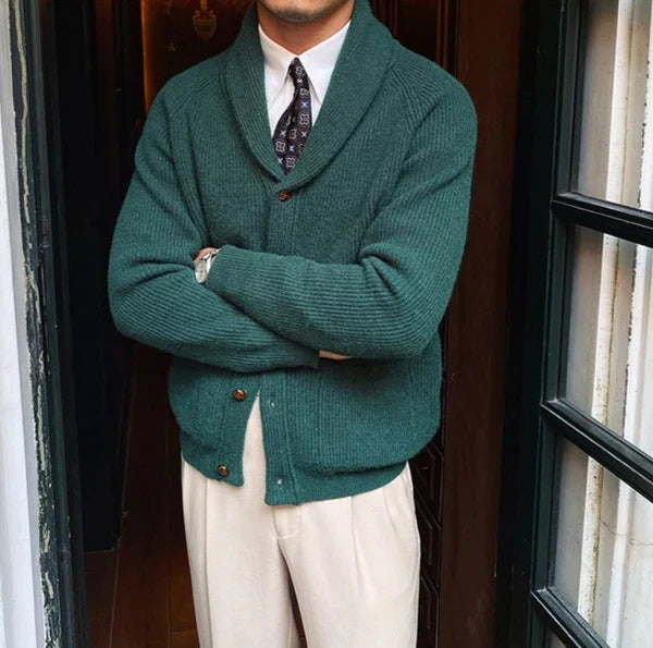 🤍 Cárdigan De Punto Con Cuello Chal – Clásico, cálido y con estilo