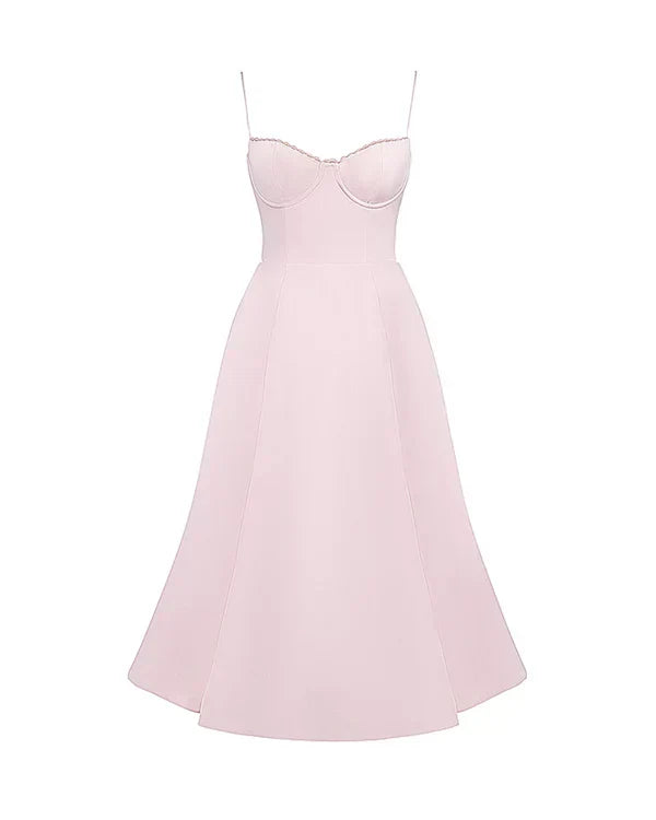 Nuestro vestido midi “Selene” combina elegancia y encanto con su tejido satinado brillante y suave malla elástica. El corpiño con ballenas realza la cintura y el escote corazón con copas aporta soporte y feminidad. Los tirantes ajustables garantizan un ajuste perfecto, mientras que la falda midi con tul añade volumen y un toque de glamour sofisticado.